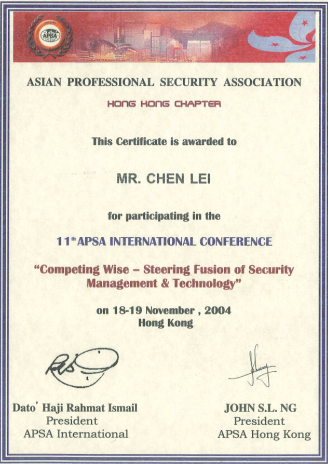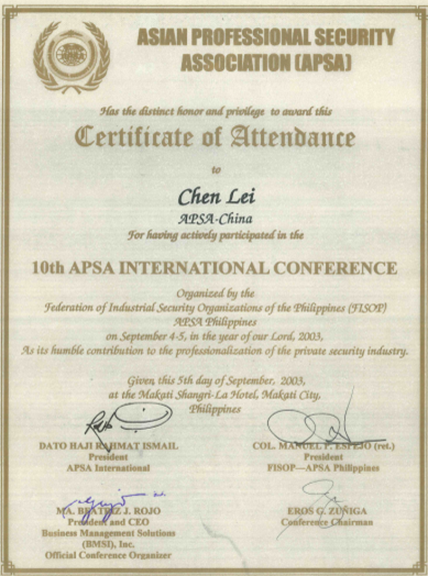 陳雷安保現(xiàn)代化管理證書管理