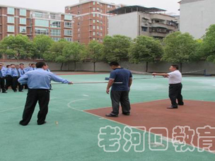 場演練后,隊員們來到市教育局六樓會議室,參加由老河口市教育局聯(lián)合該市公安局、保安公司舉辦的全市校園專職保安專題培訓。市公安局黨組成員、副局長許云平,市教育局黨組成員、副局長安崧參加培訓會議,并對當前全市校園保安工作做出具體要求。